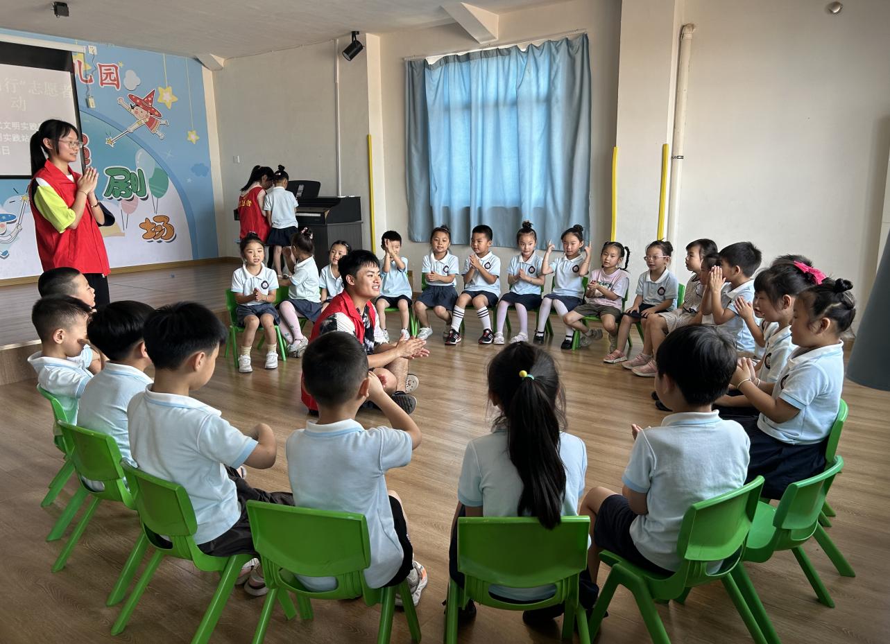 7月18日,当正午的太阳照在幼儿园的操场上,志愿者们的身影已经忙碌起来。他们身着统一的服装,脸上洋溢着亲切的笑容,仿佛是夏日里的一缕清风,为幼儿园带来了生机与活力。一进入园区,就受到了孩子们的热烈欢迎,那一张张纯真的笑脸瞬间驱散了志愿者们路途的疲惫。