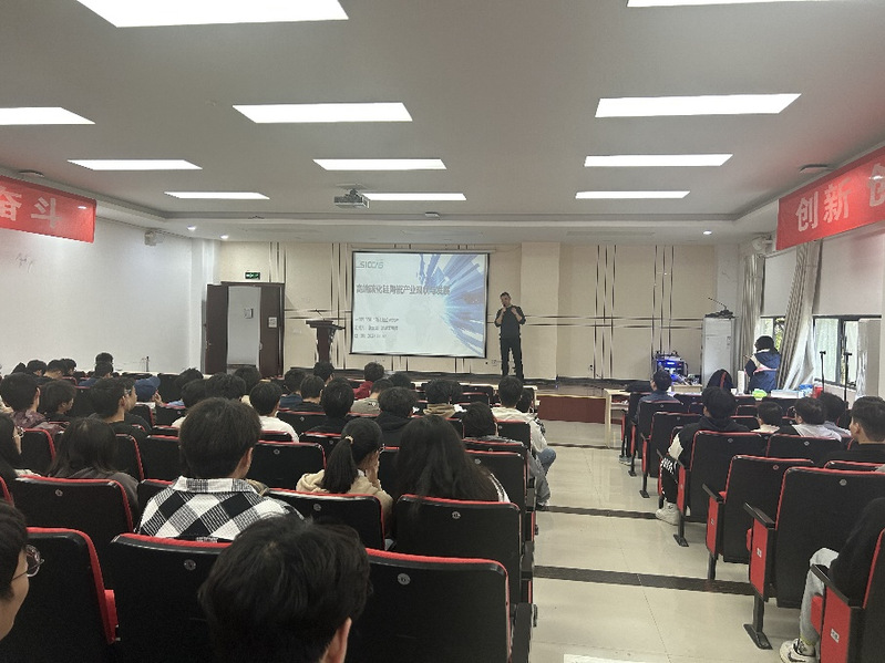 张家欣在主持时积极引导师生们提问,大家就高端碳化硅材料的现状,上硅所对高端碳化硅材料研究的成果和心得,以及一个普通高校的本科生在认知了解高精尖科学技术时应当具备的专业素质进行了探讨。张玉强耐心地一一解答,还分享了自己的宝贵经验。