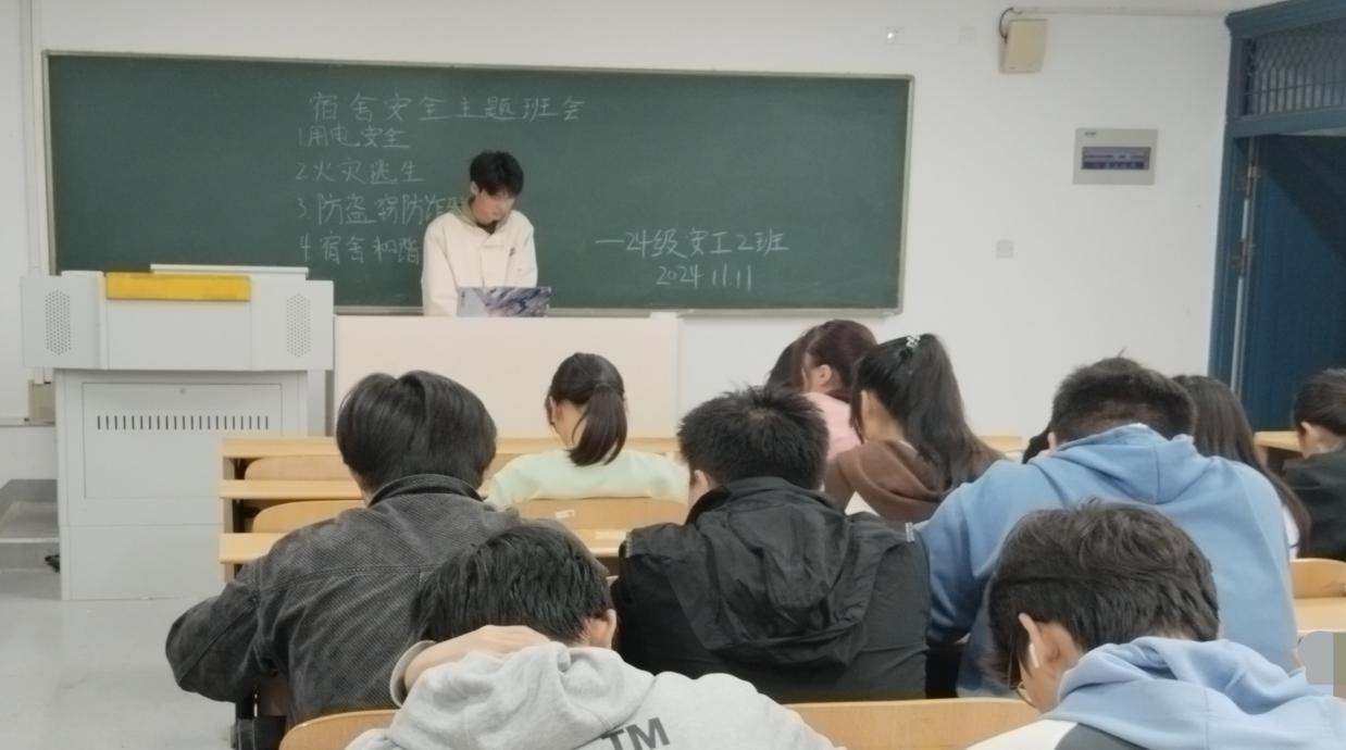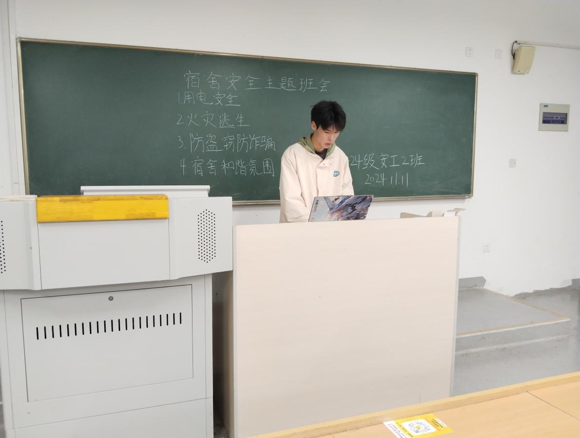 为了加强宿舍安全教育,提高同学们的安全防范意识,2024年11月11日晚19:00点,24级安全工程2班在南教201举行了以“宿舍安全教育”为主题的班会。此次班会讲到的宿舍安全问题,关系到每位同学的生命安全及切身利益。班会共有29位同学参与,由24级安全工程2班班长张金涛主持。