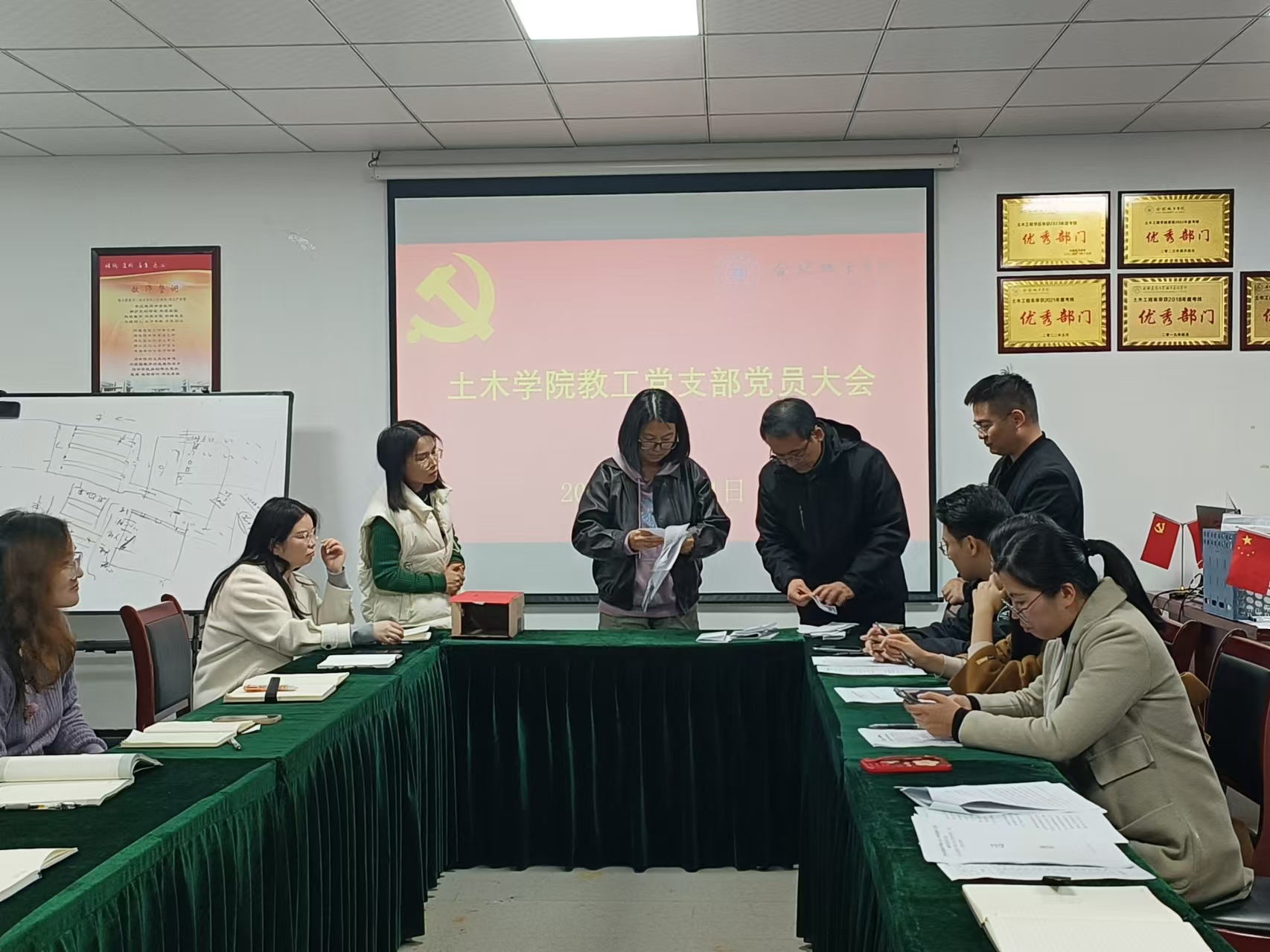 2024年11月21日,土木学院教工党支部召开换届选举党员大会。会议由土木学院教工党支部书记王静同志主持,应到会党员30名,其中有选举权的党员29名。实到会党员25名,其中有选举权的党员24名符合开会要求。