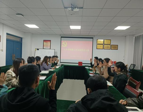 会议开始,党支部书记王静同志介绍此次召开党员大会的主要任务和议程有两项。一是听取和审查上届党支部委员会的报告;二是选举新一届党支部委员会。会议进行第一项议程由李云凤同志代表上届党支部委员会作报告,随后由有表决权的党员同志对报告内容进行举手表决。经现场举手表决,一致通过了上届党支部委员会的报告。