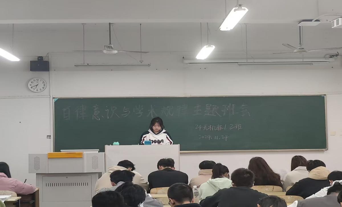 24级无机非专业全体同学参加班会,24无机非2班班长张思彤同学在班会上围绕“提高自我管理与自律能力”等内容进行了详细的讲述。