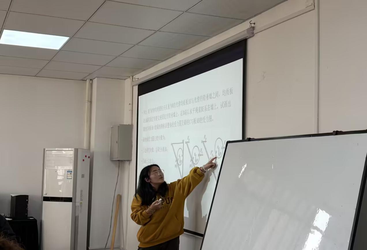 班会伊始,辅导员毛蕾老师指出,掌握专业课程的核心内容,对于同学们来说具有重要的意义。随后,由23无机非韩盈盈同学带大家进行了课程复习讲解,她详细讲解了工程力学这门课的基本概念、重要知识点以及常见考题的解题步骤,通过生动的实例和清晰的逻辑,帮助同学们理清课程的脉络,增强了对知识的理解。