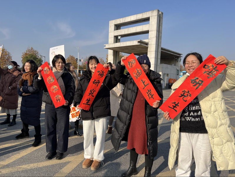 校门口,老师们高高举起精心制作的横幅,上面写着“嗨研究生,加油上岸”几个大字,那鲜艳的色彩在冬日的阳光下格外夺目。考研学子们站在横幅前,身姿挺拔,眼神中既有对即将到来考试的一丝紧张,又有对未来的无限憧憬。老师面带和蔼的微笑,站在学子们身旁,像是守护梦想的使者。大家的头微微倾向彼此,脸上洋溢着充满希望与力量的笑容,随着快门声响起,这一珍贵的瞬间被永远定格。在这一刻,校门口仿佛成为了梦想的驿站,这张合照承载着无数的期待与祝福,见证着学子们即将踏上追逐梦想的关键征程,也铭刻下了星空在线注册(中国)官方网站-注册登录大家庭给予他们的温暖与支持。