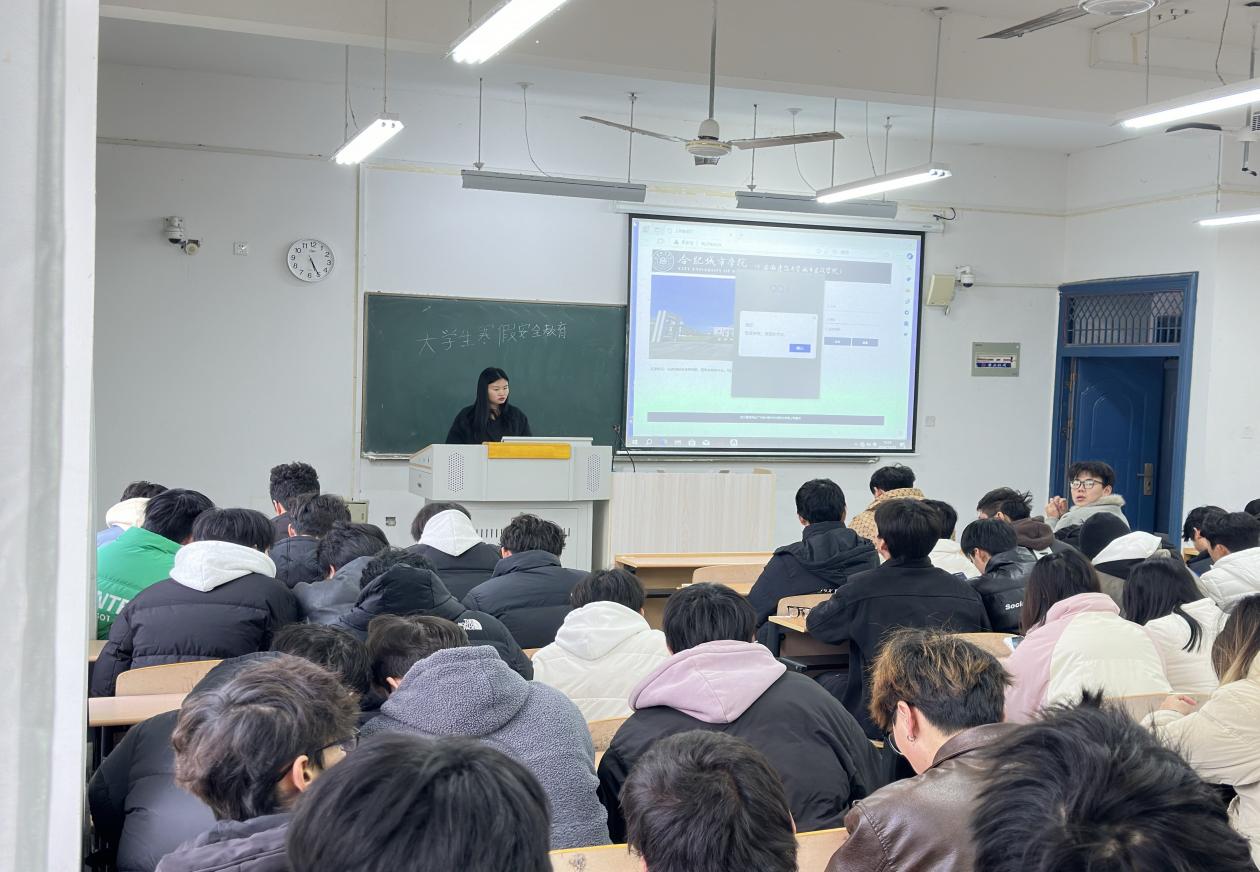 接着,辅导员申程程老师分别从不同的安全领域进行了详细讲解。在交通安全方面,列举了近年来因不遵守交通规则而导致的交通事故案例,提醒同学们无论是乘坐公共交通工具还是选择自驾、骑行,都要严格遵守交通法规,不超速、不超载、不疲劳驾驶、不酒后驾车,过马路时要走人行横道,注意观察交通信号灯。特别针对寒假期间可能出现的恶劣天气,如冰雪路面,告知同学们要谨慎慢行提前做好车辆检查和防滑措施。