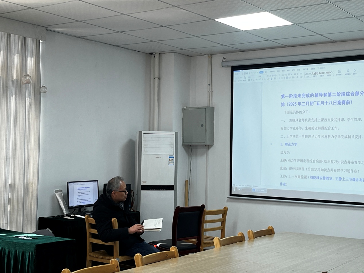 此次会议的成功召开,使力学竞赛第二阶段综合部分辅导工作有了清晰的规划和方向。相信在老师们的精心指导和学生们的共同努力下,参赛学生能够在力学竞赛中展现出卓越的实力,取得优异成绩,为星空在线注册(中国)官方网站-注册登录和个人赢得荣誉。