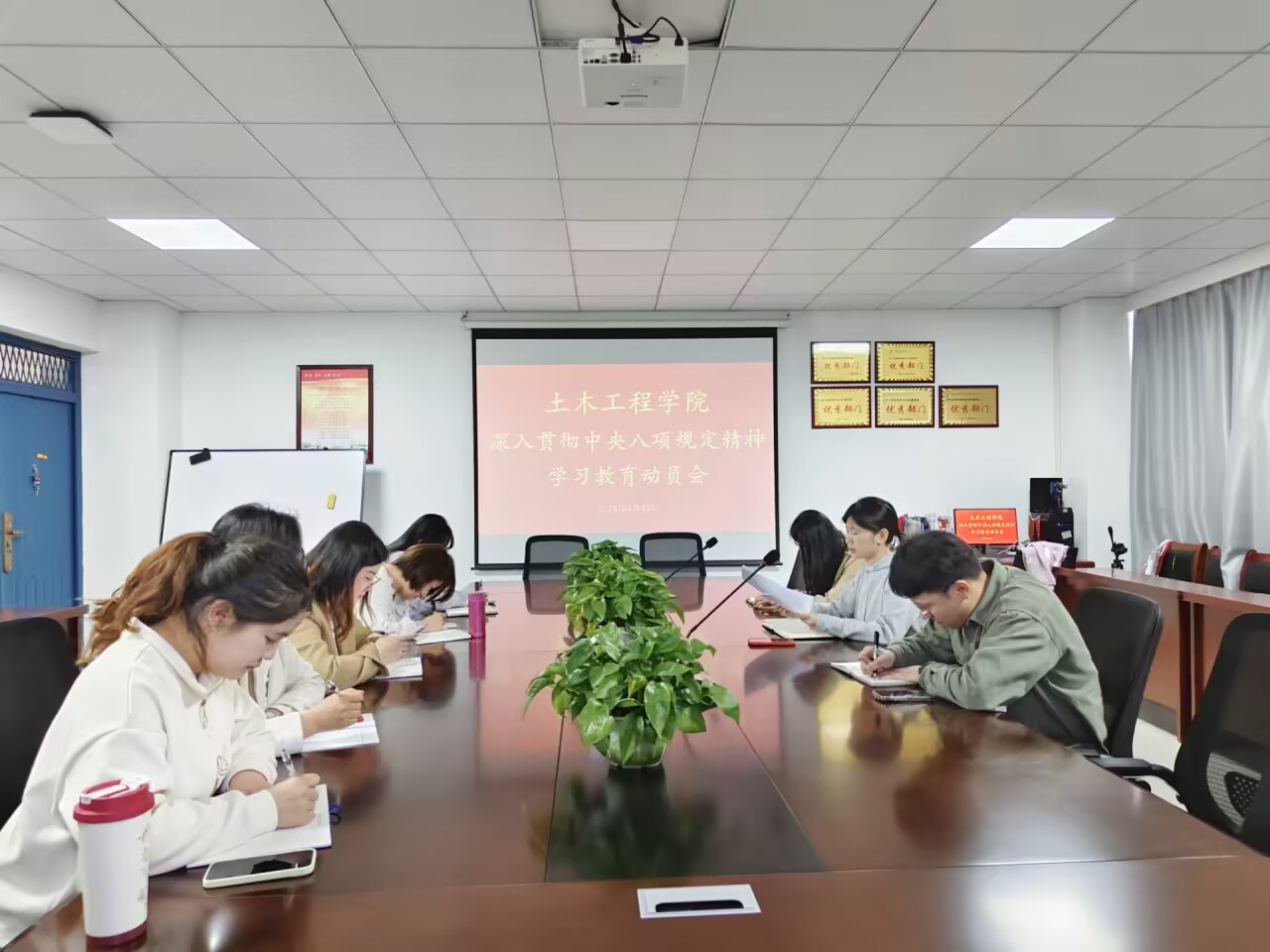 4月8日上午,土木工程学院在实验楼北302会议室召开深入贯彻中央八项规定精神学习教育动员会。会议由土木工程学院党总支副书记张敬知主持,学院党总支委员、各党支部书记参会。