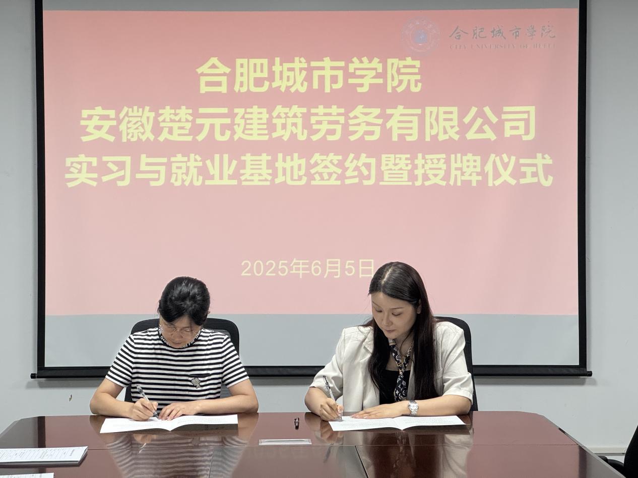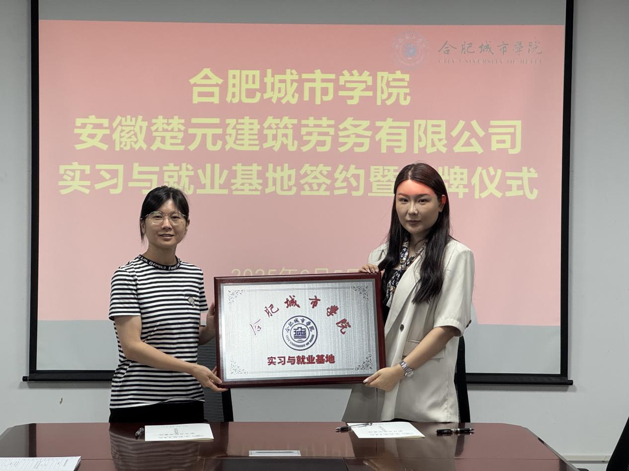 6月5日下午,土木工程学院在实验楼北302会议室召开校企合作洽谈会。邀请安徽翊非建设工程有限公司、安徽楚元建筑劳务有限公司两家企业相关负责人来校洽谈合作,学院院长雷庆关、党总支副书记张敬知出席会议,土木、道桥有关专业负责人参加座谈会。双方就深化产教融合、协同育人等议题展开交流,并签订实习与就业基地协议,现场举行授牌仪式。