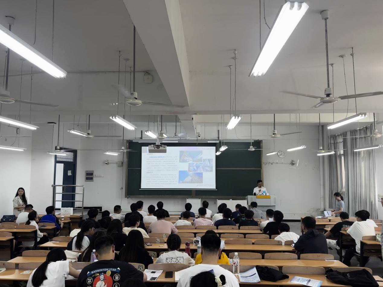 会议最后,双方签署了实习与就业基地合作协议并举行授牌仪式,签约仪式后,企业代表前往南教108教室召开专场宣讲会,面向2022级分流培养选择集中实习意向的土木、道桥专业60余名学生,详细介绍了企业发展规划、岗位需求及职业晋升通道,现场互动热烈。