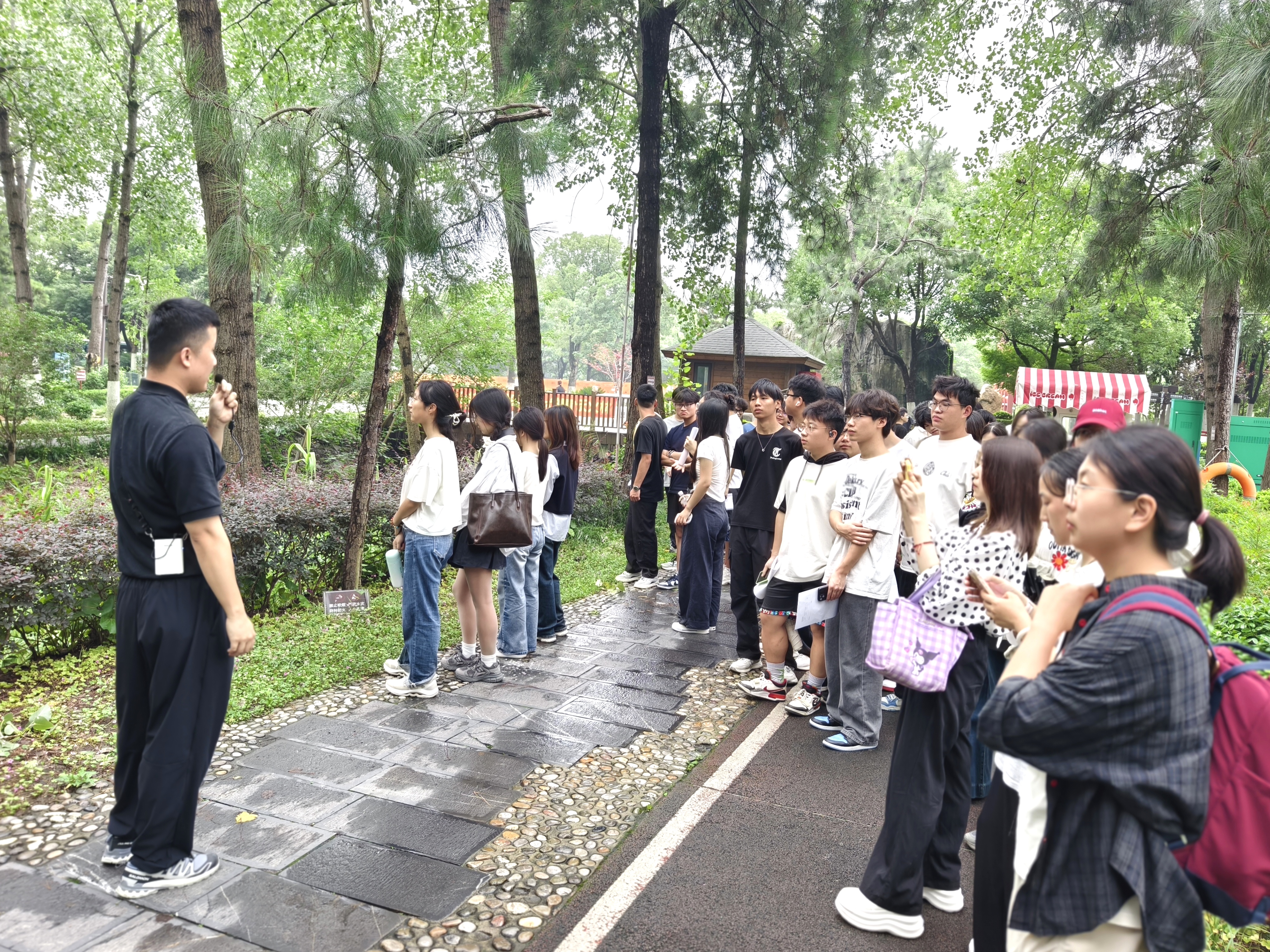实习中,师生们沿着生态步道深入园区。曹竟成依次介绍雨水收集、地表径流调控及湿地生态净化原理,重点讲解人工湿地中曝气设备与水生植物的协同去污机制。在现场讲解过程中,同学们仔细观察并热烈讨论。通过此次实地考察、专家讲解与现场研讨,同学们认识了各种水生植物,并近距离感受水生态修复在水质净化中的重要作用。这种“看得见摸得着”的学习方式,让课本中的生态净化理论变得鲜活而具体。