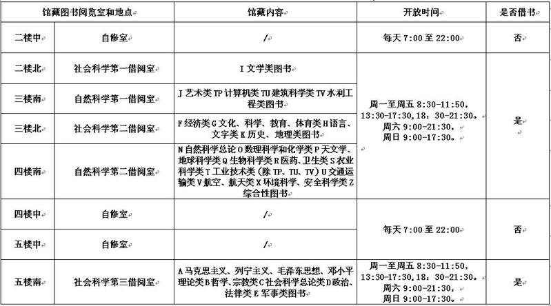 图书馆馆藏布局及开放时间