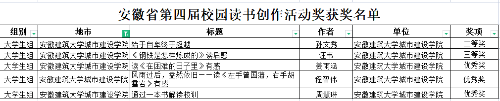 2021年1月18日,安徽省第四届校园读书创作活动获奖名单在教育厅教育宣传中心网站公布。校园读书创作活动由安徽省委教育工委、省教育厅、省人社厅、省文化和旅游厅、省新闻出版局、团省委共同举办,同时也是书香安徽全民阅读活动重点活动之一。