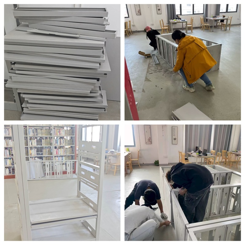 据了解,本次改造旨在进一步优化图书馆服务功能、提升读者体验,改造工程结束后,一系列收尾工作随即紧锣密鼓地展开。面对改造搬迁过程中出现的期刊架部分配件丢失问题,为确保期刊服务及时恢复,图书馆老师们主动担当,带着残存的构件驱车辗转多家五金店,逐家比对寻找匹配配件。配件购回后,他们又反复研究,自行完成了所有期刊架的组装调试工作,原本散落的构件最终变成了整齐排列的期刊架,为期刊借阅服务的顺利开展奠定了坚实基础。
