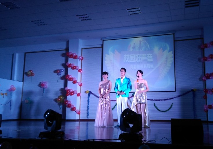 舞台灯光渐渐暗下,在全院师生期待的目光中,12位选手合唱一首《梦想天空分外蓝》响彻全场,唱响了我们内心最深处的梦想,唱响了比赛开始的旋律。《盛夏光年》让我们忆起了那些年的青涩韶华;《美丽世界的孤儿》让我们更加有勇气去面对生活;《红豆》让我们怀念起中学时代的纯美爱恋;《天亮了》让我们懂得父母的爱是多么的伟大。当我们还沉浸在深情的《can’t take my eyes off you》时,11号选手杨萍同学以独特的民族唱腔演绎的一首《为了谁》征服了全场……