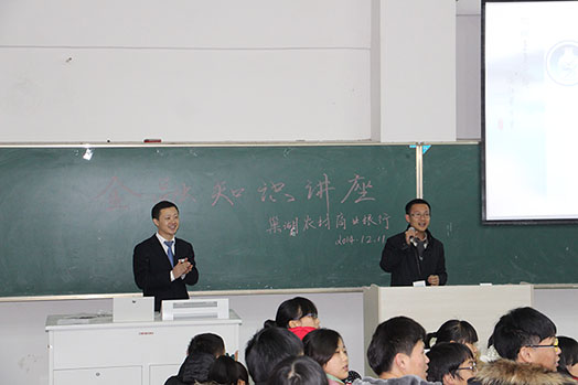 为进一步加强大学生对现代金融知识的了解,提高金融安全意识,12月11日下午6点我院特邀安徽农金黄麓支行专家,在教学楼101教室开展一堂别开生面的金融知识讲座。安徽农金黄麓支行行长李巢峰、副行长王继胜亲临现场,在我院院长助理财务总监柏耀文、学生处副处长林岳的陪同下聆听了讲座。