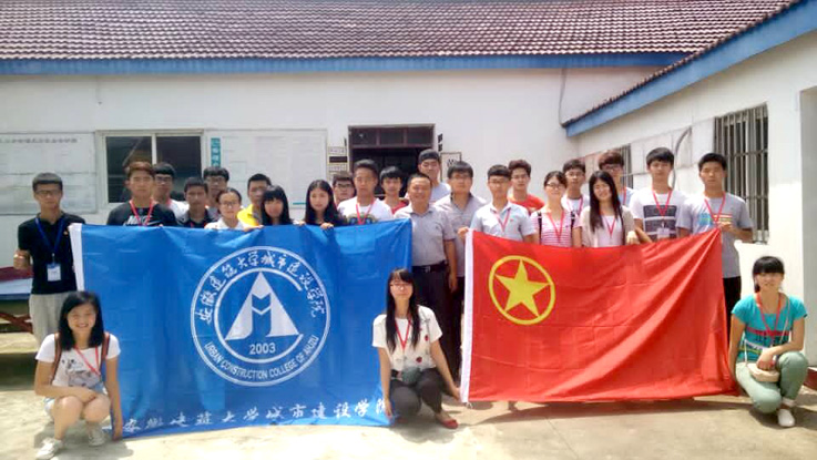 7月1日上午10点,志愿者们于安徽建筑大学城市建设学院图书馆门前集合,出发向张曈村开展这次的慰问老党员爱心行动。