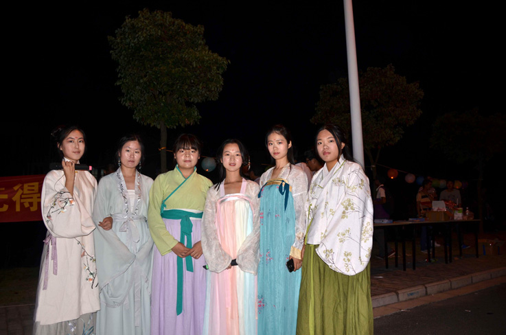 9月27日,金气秋分,风清露冷秋期半。凉蟾光满,桂子飘香远。期待已久的中秋节“同裳汉服社”活动在风华园门口展开。