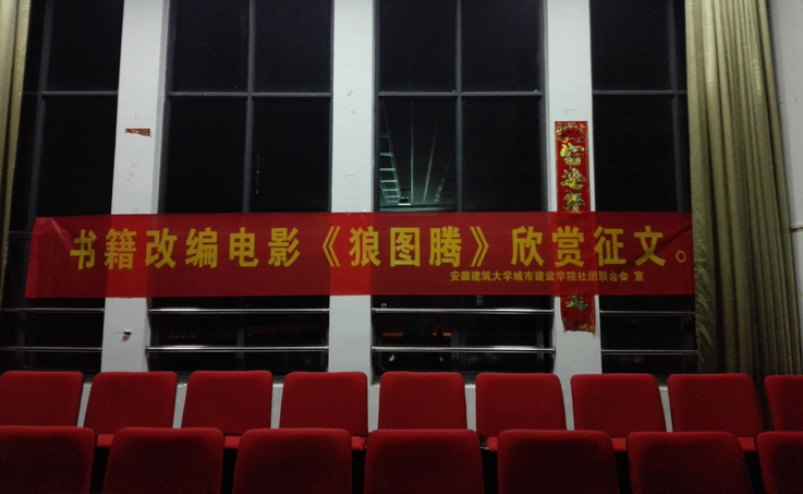 10月30日晚上7:00,在即将到来的“读书文化月”的号召下,社团联合会组织的书籍改编电影赏析征文活动在校大礼堂拉开帷幕,这次放映的是由著名书籍《狼图腾》改编的同名电影。