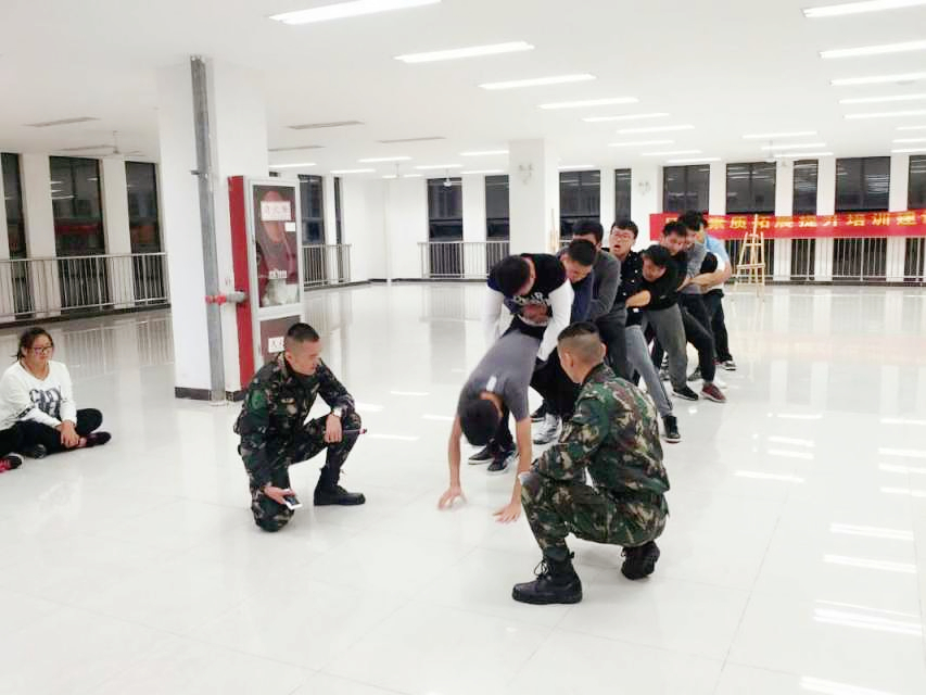 本次训练从早上八点十分正式开始。初次见面的教官就狠狠的给了同学们一个下马威,磨掉了同学们的锐气。短短的静坐后,同学们冷静下来。随后,教官又带领同学们进行了简单的益智游戏,现场气氛很快由压抑转为轻快。每个人的脸上都洋溢着笑容。