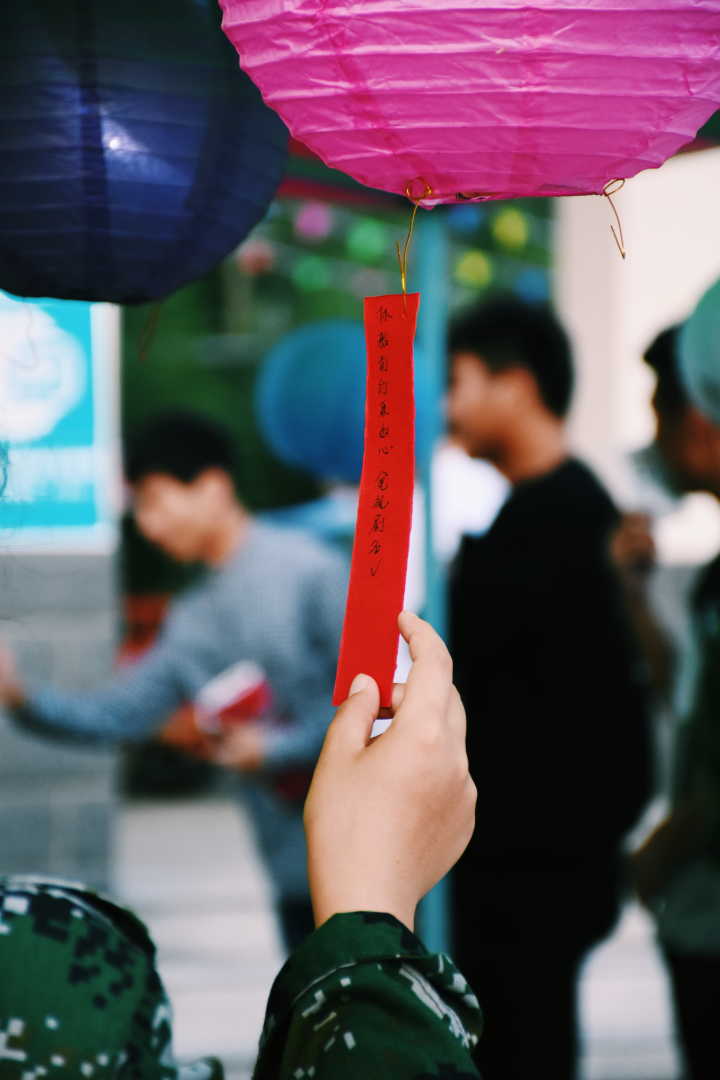 下午4:30左右活动一开始便吸引来许多刚刚军训结束的小萌新,他们陆陆续续的走过来猜灯谜,投壶,玩桌游。暮色渐渐降临,人也越来越多,他们摘下挂在桂花树、帐篷的灯笼上的灯谜,到到核对区核对答案,核对人员忙的不可开交,月饼、明信片、便利贴等小奖品不停的送出。投壶游戏这边也聚集了一群人,他们拿着箭站在两米开外往竹筒里投射,现场笑声不断。再看看桌游游戏这边,两张大桌子上早已坐满了人,一群陌生的人因为一个游戏迅速玩的火热,狼人杀、三国杀等桌游趣味横生。到了晚上7点多钟,天已经完全黑了,工作人员在食堂门外的桂花树上、行道树上挂满了彩灯,为校园更增添了一份色彩。