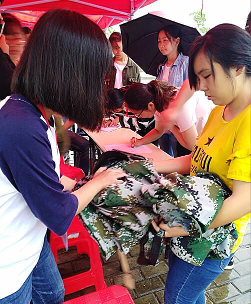 活动期间,虽然天公不作美,一直下着淅淅沥沥的雨,同学们也有着想回家的焦急心情,可大家的热情丝毫未减,前来捐献军训服的同学络绎不绝,纷纷表示对扶贫活动的支持。在同学们的积极参与下,活动很快进入高潮。社会在发展,人们的生活水平也不断提高,但是身处偏远地区的居民生活水平依然较低,物质生活水平也严重低下。消除贫困,改善民生,实现共同富裕是我们努力的目标,作为当代大学生,理应关注贫困问题,关爱贫困人口,关心扶贫工作,为改善偏远地区人民生活水平贡献自己的一份力量。在同学们的热情响应和温情付出后,活动落下帷幕,志愿者们将军训服搬运到指定地点。