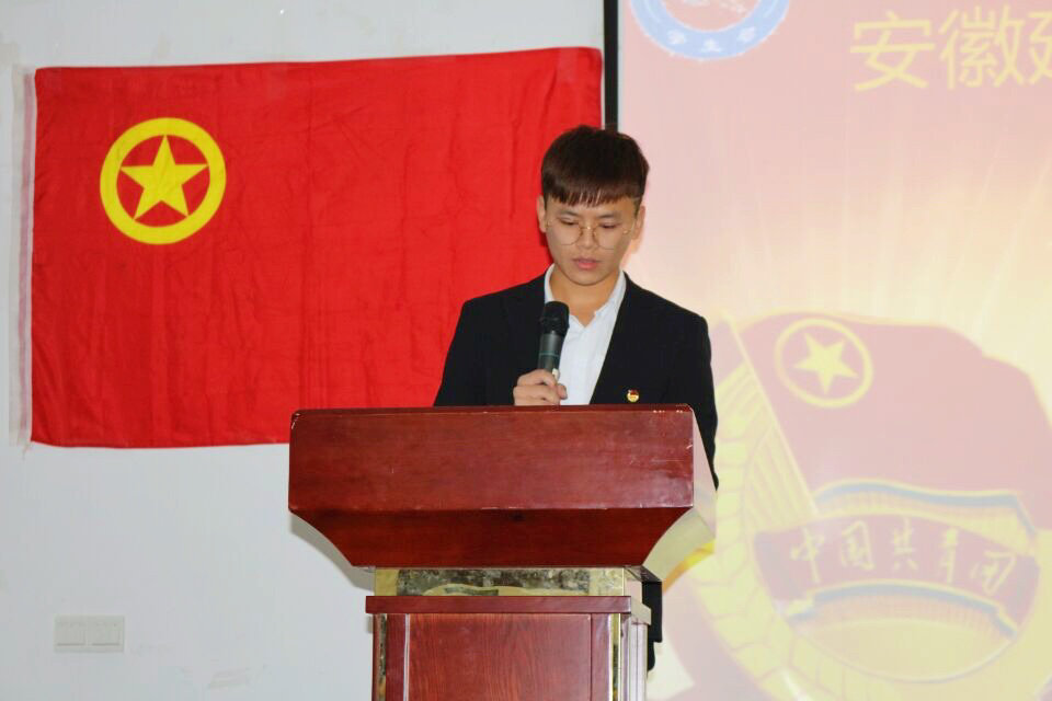 伴随着《光荣啊,中国共青团》的歌声,新生挂牌仪式正式拉开帷幕。院学生会代理主席团代表叶明杰分享自己的工作经历、心路历程,希望各部门部长做好自己身为顶梁柱的职责,将部门带上更高的阶梯,使每一位干事能够最大限度发挥潜能;鼓励新干事坚持到底,让所有委屈和泪水都成为使自己坚强的一块砖,成就更优秀的自己;期望各部门各干事间相互团结,相互包容,让院学生会越办越好!