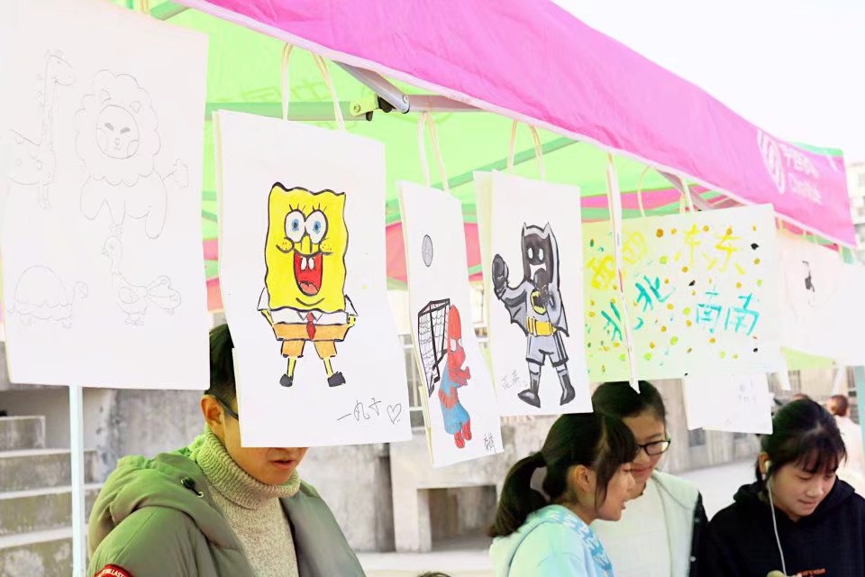 感恩节当天,多位同学参与到 “涂鸦表我心意”活动中,活动现场人山人海。同学们借助活动平台把内心藏匿已久的谢意,用一种特殊形式——“图画”表达出来。与书写相比绘画的形式更加新颖,也更有寓意。没说出的谢谢,用画笔跃然纸上,用颜色渲染,同学们一笔一划勾勒出的是真诚的心意。食堂门口挂着的一个个画上心意的环保袋随风而动,把感恩精神带到我院的各个地方,也带到了你想要感谢的人的身边。