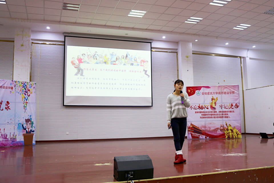 决赛总共八场比赛,分别由八位参赛选手个人就“不忘初心,牢记使命”的主题谈述所衍生出来的领悟。决赛在徐佳宾同学饱含深情的演讲《十九大精神》中拉开帷幕。整场比赛选手们或激昂高亢,或低沉吟诵,用真情诉说自己对“初心”与“使命”的感悟,进而引申到国家的层面,抒发自己炙热的爱国情怀,由衷的赞美党。整场比赛演讲形式丰富多彩,选手台风别出心裁,她们富有感染力的精彩表现打动了评委和在场的观众,赢得现场阵阵掌声,展现了现代青年的勇于肩负国家使命的决心。其中我院朱宏同学的演讲精彩非凡,脱颖而出。她以自身出发,将自己从高中升入大学的变化形象的表述出来。接着,说出“个人梦”的概念。随着演讲的继续,背景音乐逐渐走向高昂。朱宏同学引古据今,以“小王子作家的言论”及“上世界中国的发展”为例,引出“中国梦”。并以此继续展开到大学生对自身使命的认知及对党的热忱。言语铿锵有力,令人奋进。台下观众也因此情绪高亢,热情澎湃,掌声连连响起。整场比赛主办方还别出心裁的安排了3场节目,活跃了现场的气氛。其中在抽奖环节,主持人随机抽取10位幸运观众赠送书签,场下呼声不断,不仅令选手放松心情,也使比赛的气氛进一步升温。最后,比赛在歌曲《彩虹》的乐声中圆满收尾。