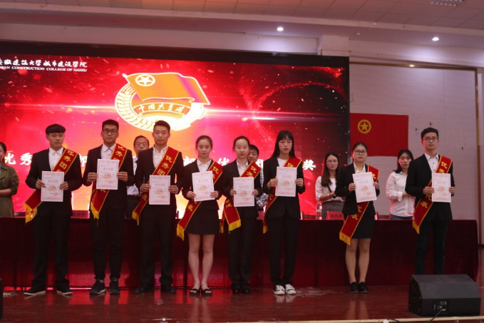 “五四”表彰大会伴随着参会师生的嘹亮团歌声开始。首先,副院长田园宣读了关于表彰2016-2017学年“优秀团支部”、“优秀团干部”、“优秀团员”的决定。并为刘希强等111名“优秀团干部”、李改月等423名“优秀团员”和14环设二班等25个“优秀团支部”颁奖。