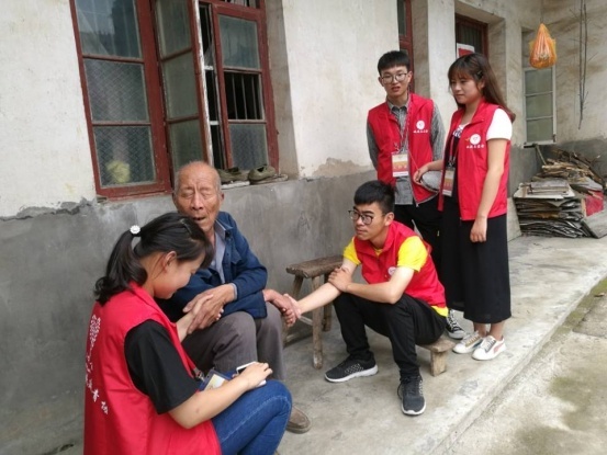5月12日下午我院青年志愿者协会和管理系学生会成员一起,在张瞳村村居委会的带领下走进了孤寡老人的家中给他们送上了“温暖”