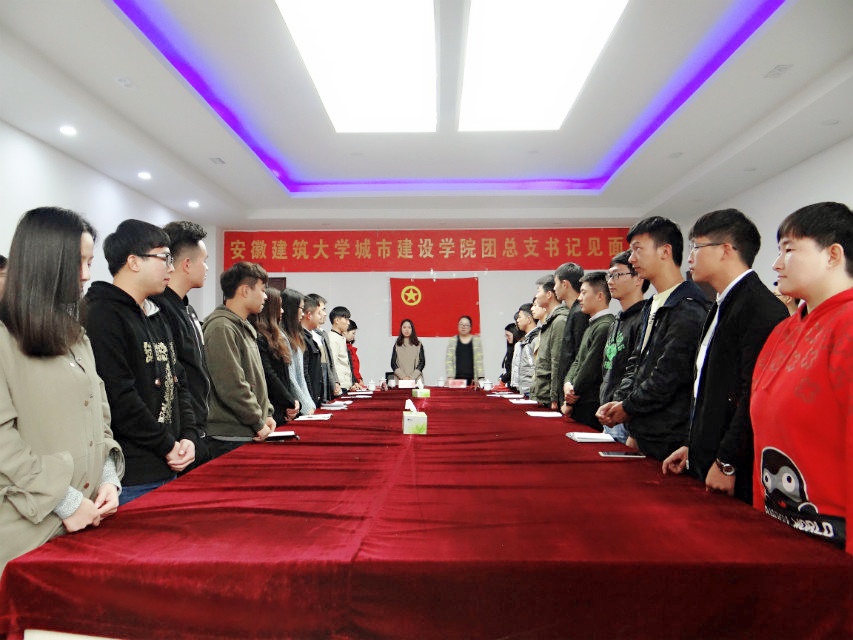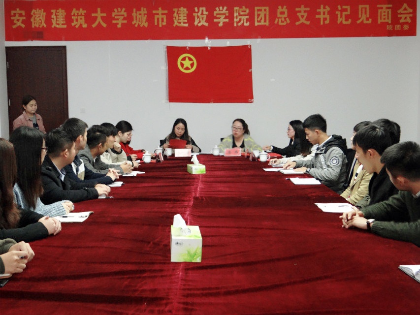 2016年11月17日,安徽建筑大学城市建设学院团总支书记见面会在图书馆小会议室正式召开。出席此次见面会的人员有学生处处长兼团委书记王利康女士、团委副书记唐玮老师、管理系周琪老师、机电系殷凤媛老师、建艺系陈翎老师、土木系刘晓凤老师、院学生会主席团和各系学生会主席团成员及各专业团支书代表。