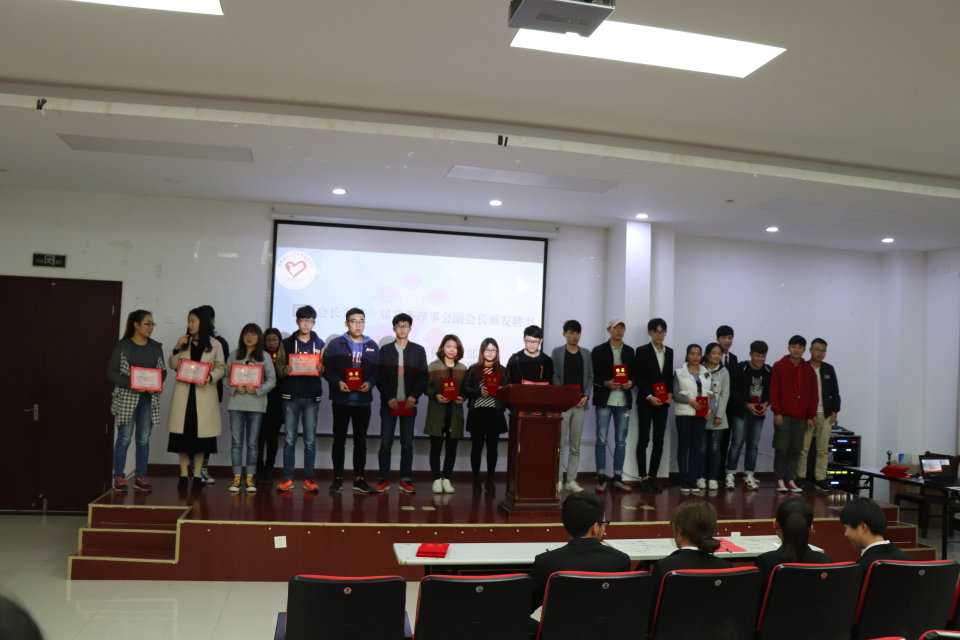 紧接着,由会长魏亚为上一届副会长,部长,副部长及表现优秀的干事颁发聘书,以此来感谢他们为青协奉献的大好年华。在上一届协会副会长葛晓雨诙谐幽默又极富感染力的演说之下,会议也渐渐接近尾声。天下无不散筵席,最后会长魏亚进行会议总结陈词,话语中是对历往青协活动情形的再回首,而在座的全体成员都将共筑青协这个温暖的爱巢。