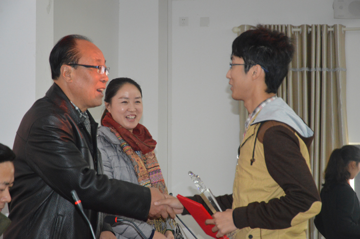 本次大会由学生处副处长林岳担任主持人,共邀副院长程勇、学生处处长候为民、团委书记王利康,各系辅导员以及学生会相关成员,学生代表参加。当然,还有最耀眼的各项活动得奖者参加了此次总结大会。首先,王利康书记对今年读书月举行的一系列活动进行了简单的介绍及总结。今年读书月的形式多样,异彩纷呈,同学们也踊跃报名,积极参加。有些活动煅炼口才,如辨论赛、演讲比赛;有些活动考察写作能力,如征文比赛;有些活动与书亲密接触,如早读、讲座;还有主题班会、黄麓设计大赛等特色活动。通过这些活动,提高了学生们的思想觉悟和文化底蕴,营造了书香缕缕满校园的文化氛围。激励我们养成多读书、乐读书、好读书的习惯。紧接着,候为民处长向我们宣布读书月系列活动获奖人员及队伍的名单。接下来,程勇副院长进行了精彩的发言。他用本年读书月活动中的亲身经历告诉我们“学风四戒”,即戒满,戒骄,戒惰,戒浮。同时,他用一句“鸟欲高飞先振翅,人要上进先读书”书告诉我们读书的重要性。最后,获奖人员与院领导进行了合影留念。
