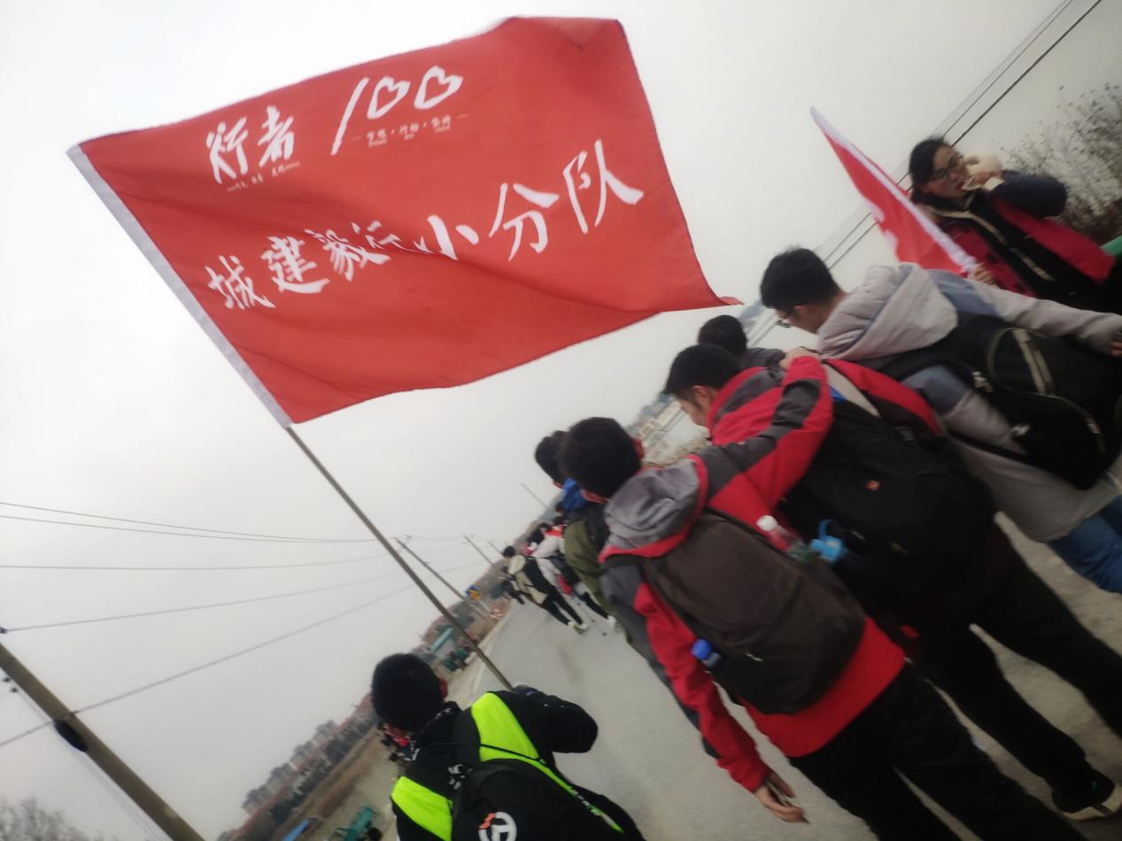 每到达一个公里指示牌,都能给他们增加一份力量。同学们手举着”城建毅行小分队”的旗帜,带领着城建毅行者们,迎着朝阳,迎着落日余晖,迎着繁星点缀的夜,不断前行。一路上,都是他们行走的痕迹。中途休息时,一碗泡面,一份盒饭,都能成为他们冬日里的温暖慰籍,成为他们冬日里行走的力量。