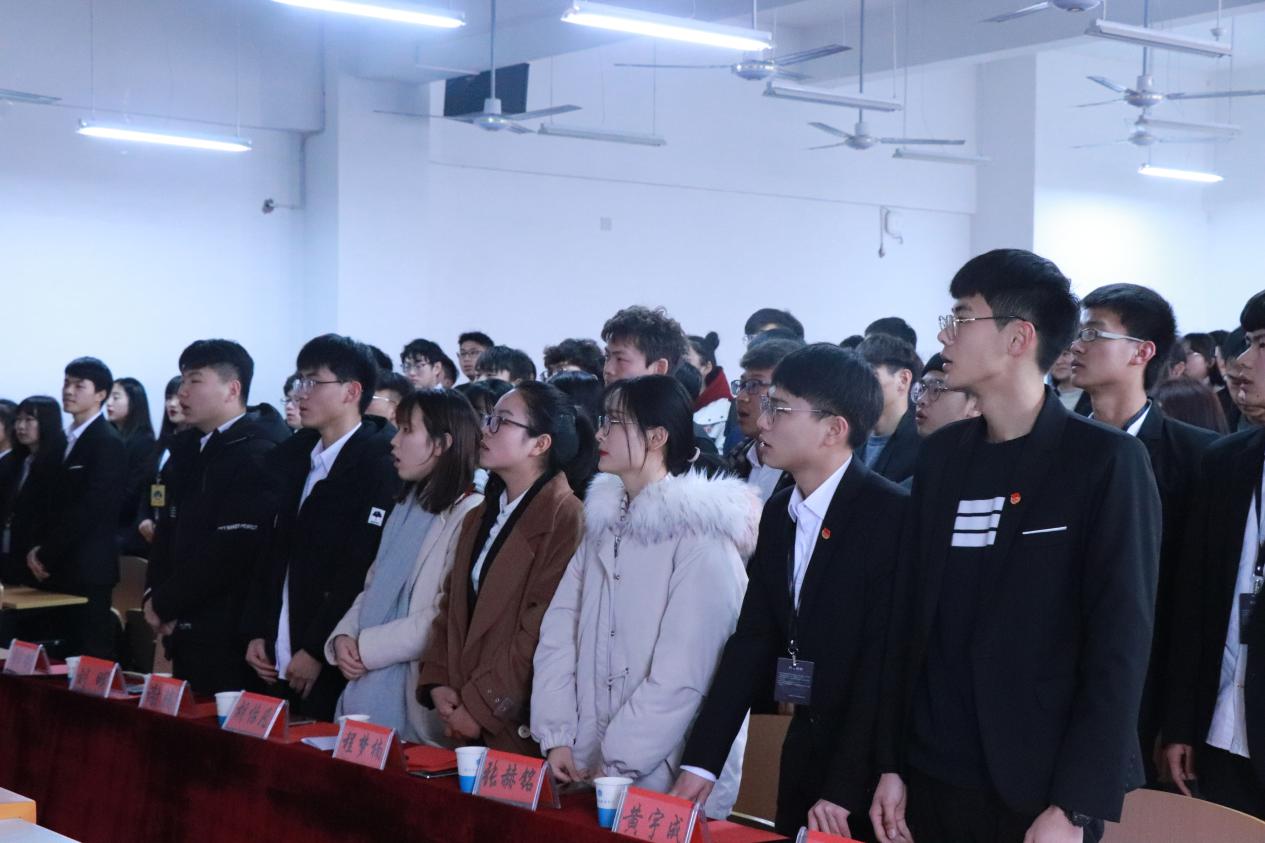 大会第一部分,由主持人致开幕词,宣布大会开始,并介绍到场老师及主席团成员。介绍完毕后全体成员进行团歌的奏唱。共青团歌的奏唱不仅激励着所有学生会成员奋发向上,歌词中的一词一句更是告诉在场所有人新的一学期要建立新的奋斗目标。参会人员在振奋人心的团歌中愈发表现出激昂的斗志,表达出对未来工作积极向上的斗志。