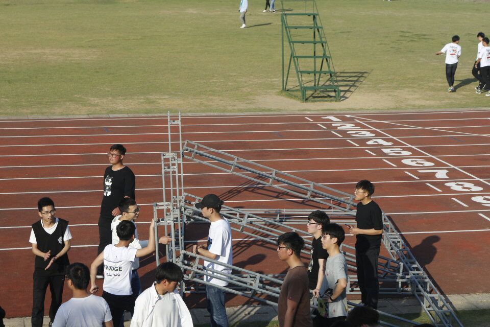 光彩照人的背后是由安建大城建学院院学生会组成的志愿者的劳动付出。笨重的仪器,庞大的铁架,散布全场的旗帜均由他们一臂一步安置到位。虽是初春,但仍有晶莹剔透的汗珠从他们的额头滚落。他们辛勤的付出,为明天的运动会保驾护航,相信未来两天的运动会必定圆满成功!