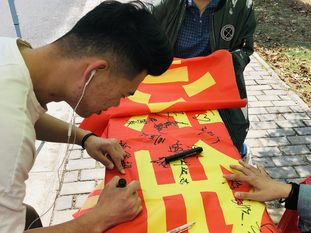 食堂对面长长的横幅以及搭建的帐篷很快便吸引了同学们的注意,同学们来到帐前,院会成员们便向同学们介绍国家安全的相关知识,同学们都积极踊跃的在横幅上签名,一笔一划书写着心中的那份爱国情怀。他们通过签名的方式,表达了自己对国家安全日活动的支持和对国家安全的重视。