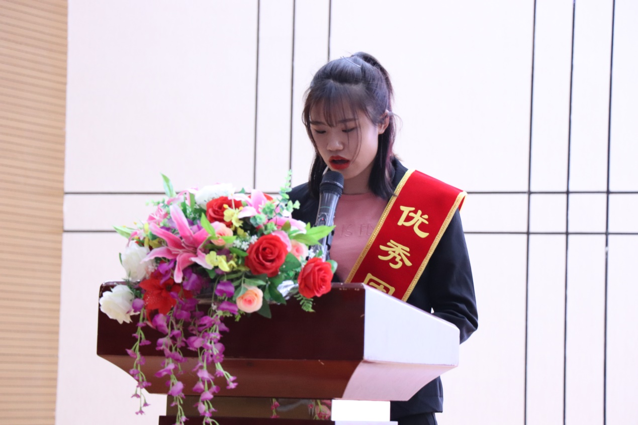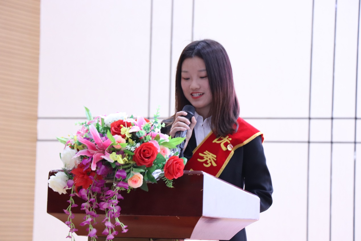 随后,优秀团支部、优秀团干、优秀团员代表分别上台领奖。机械与电气工程系16级钱千资同学代表优秀团干发言。在发言中,她阐述了自己在一年中学习的经验和心得,以及对过去一年在团支书工作中的总结,她说,“优秀团干”是一个光荣的称号,是对过去工作的肯定,更是未来前行的动力,在际遇与机缘并存的今天,当代青年更应肩负使命,勇担重任。