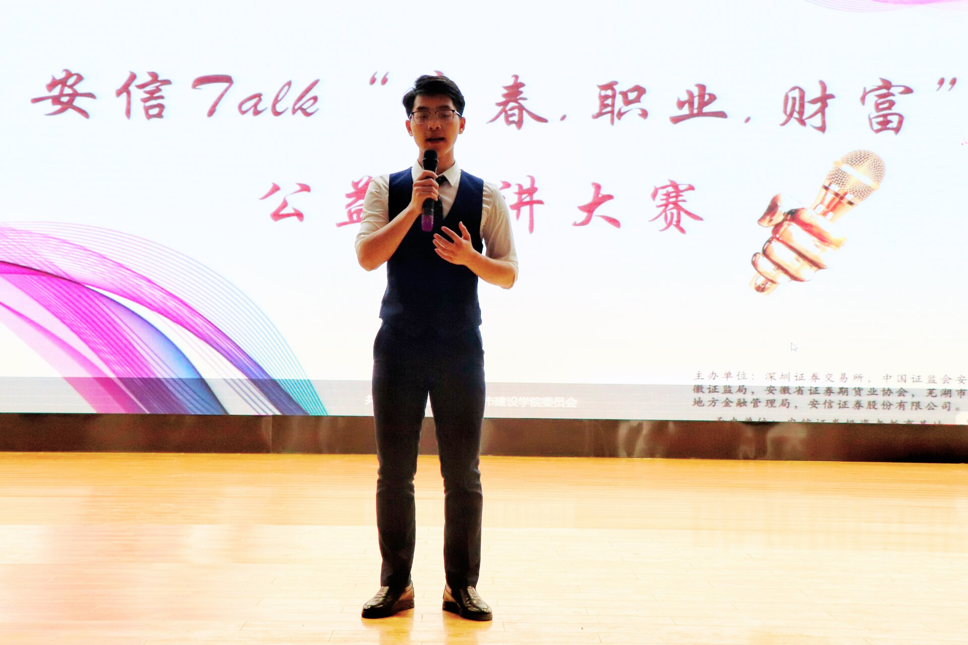为提升学生们的演讲能力,提高学生们对金融风险的认识,2019年5月10号,安徽建筑大学城市建设学院在院大礼堂举办安信Talk“青春·职业·财富”公益演讲比赛。