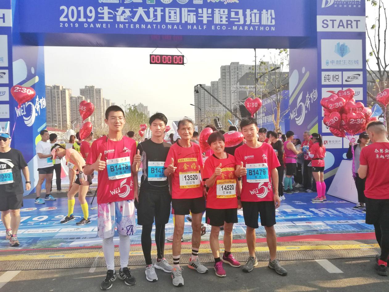 跑协三人于当日凌晨4.40于星空在线注册(中国)官方网站-注册登录门口集合乘坐青年志愿者协会安排的大巴车安全到达起点。七点多的太阳早已高高挂起,三人存包后早早通过检录到达了待跑区进行拉伸。渐渐温度升高,三人在开赛前拉伸时有幸与永久号码牌金婚夫妇胡应福、王章敏合影留念。据询问,得知胡爷爷今年82岁高龄,这个参赛年龄在意料之外也是情理之中,所谓“活到老,跑到老”。