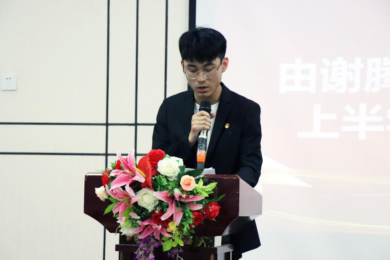 大会临近结束,由学生会主席谢腾作学生会上半学期工作总结。他对院会成员提出了几点期望,并强调在以后的工作中,希望成员们秉承学生会“服务同学,服务大局,自我管理,自我锻炼”的宗旨,协助学院创造良好的教学秩序和学习生活环境。