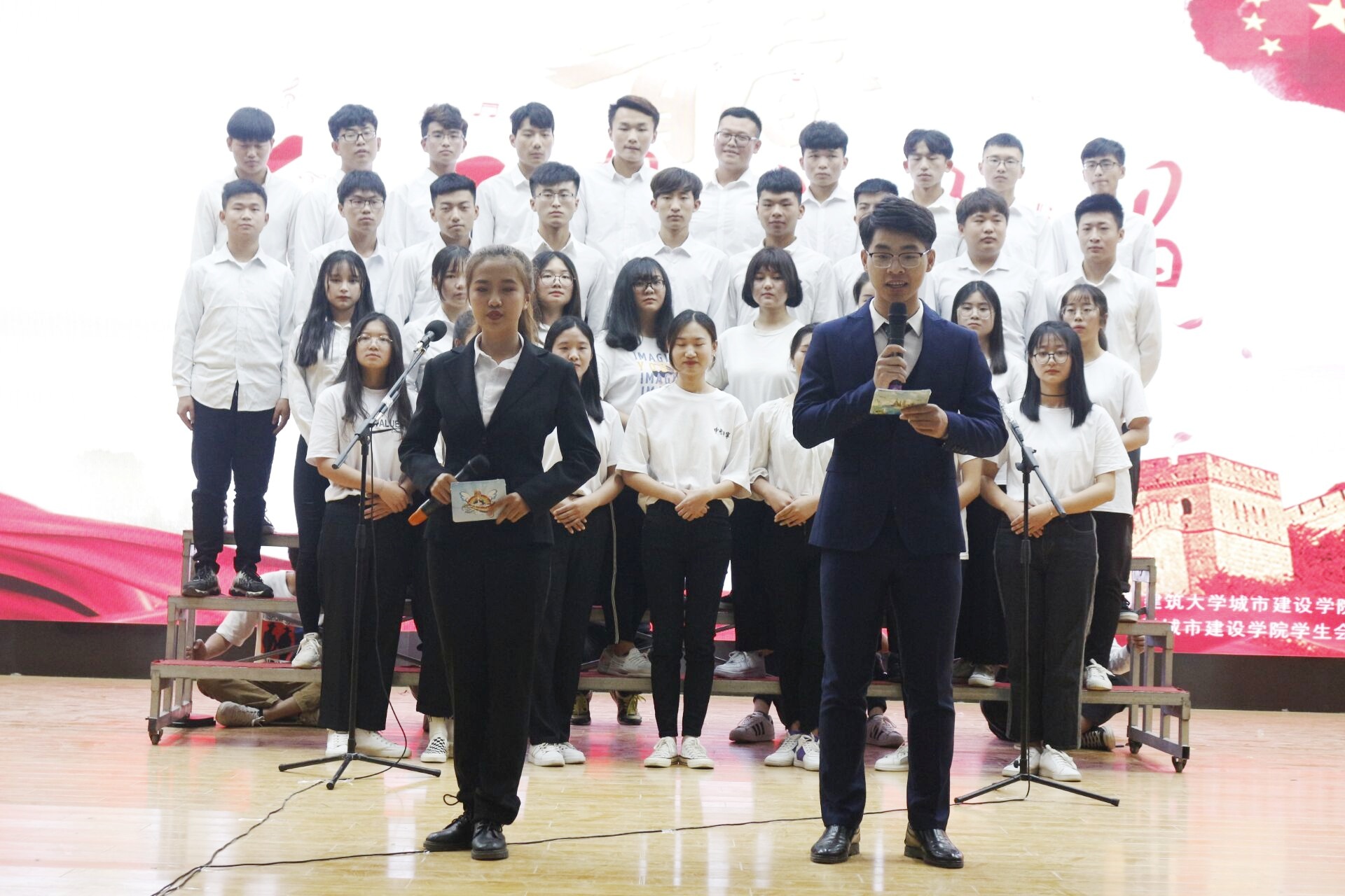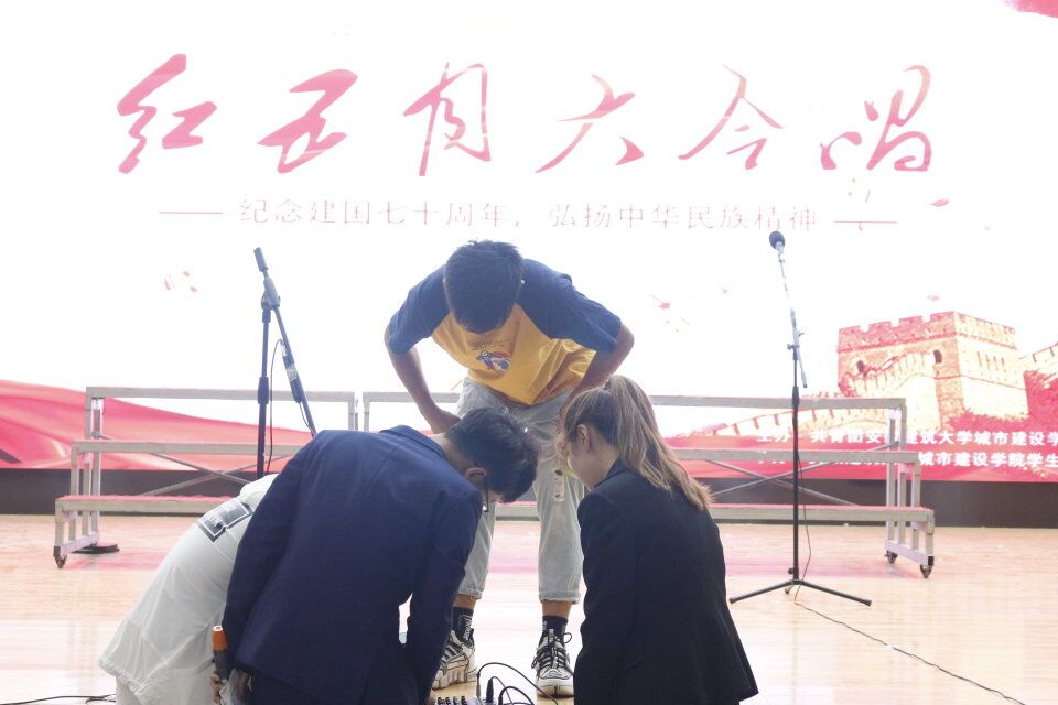 为庆祝建国70周年,深入开展爱国主义和时代创新精神的核心价值体系教育,讴歌中华民族实现伟大复兴的百年奋斗历程,弘扬社会主义先进文化,唱响爱党爱国的主旋律,培养学生的爱国主义思想,增强学生的责任感、使命感和荣誉感。2019年5月30日,安徽建筑大学城市建设学院于图书馆二楼大礼堂举办了“红五月大合唱”活动。到场嘉宾有副院长田园、团委书记王利康、院团委何晶老师、土木系团总支姚靖璇、机电系团总支程海苗老师、管理系团总支胡怡凡老师、机电系张懿老师。