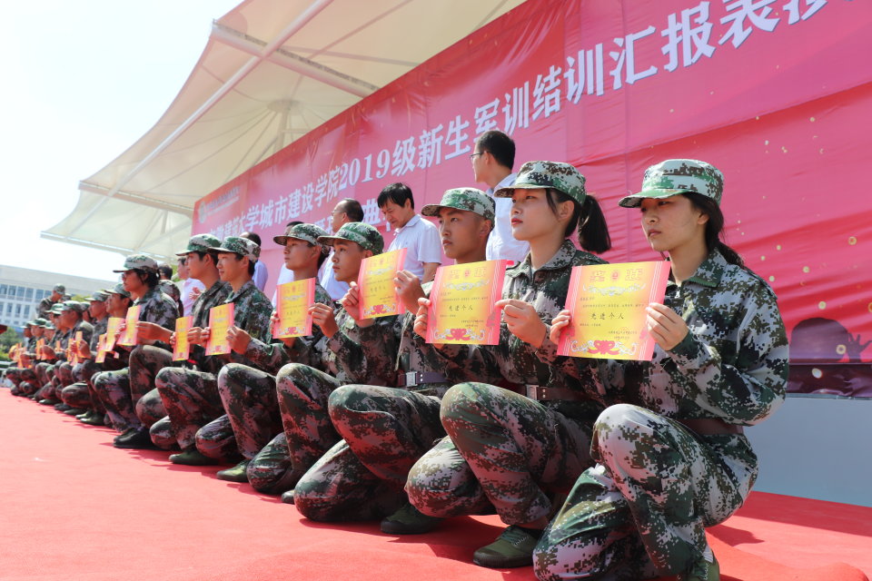 阵阵秋风,吹响收获的号角。为发扬“特别能吃苦,特别能忍耐,特别能战斗”的军人作风,锤炼和提高大学生的意志,2019年9月21日上午九点半,安徽建筑大学城市建设学院2019级新生军训结训汇报表演暨开学典礼在运动场上如期而至。