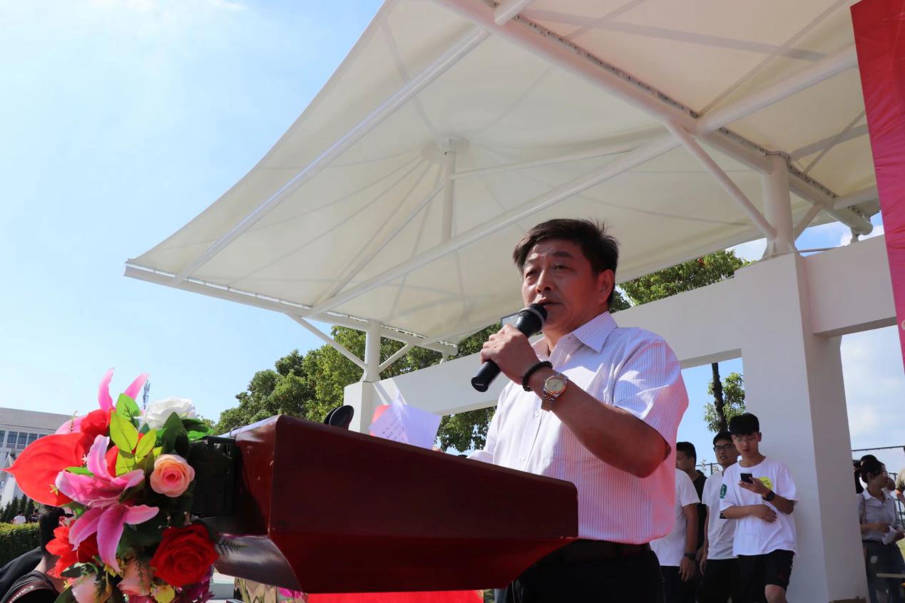 大会最后,由安徽建筑大学城市建设学院副院长,军训领导小组组长王志建发表讲话。他指出,在新中国成立70周年之际,作为在21世纪成长起来的青年学子,同学们肩负着中华民族伟大复兴新征程的重要使命。在即将开始的新生活,希望同学们可以铭记“明德、爱国、善进、匠心”的校训,在这里不忘初心,不负韶华,为实现人生理想,实现中华民族伟大复兴而奋斗拼搏。