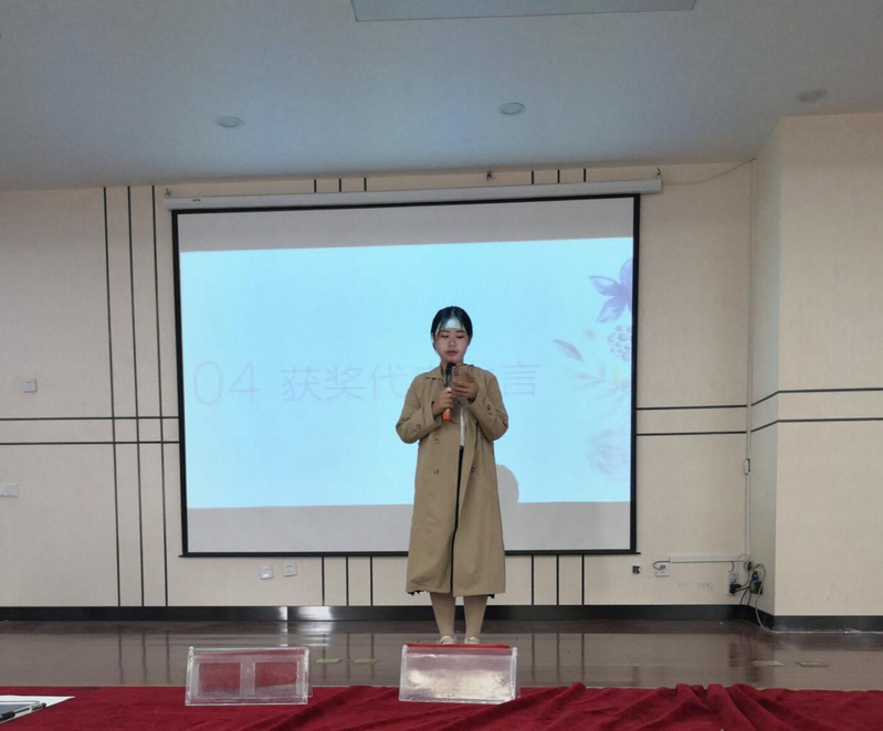 经过评审团的公正公平的评选,一批优秀作品脱颖而出。19电气刘艳萍凭借‘家书’荣获一等奖,本次比赛共评出两个二等奖,五个三等奖以及八个优秀作品。颁奖典礼在主持人胡欣雨的开场白中正式开始,首先一等奖获得者深情的朗诵了自己的文章,赢得了同学们的阵阵掌声。