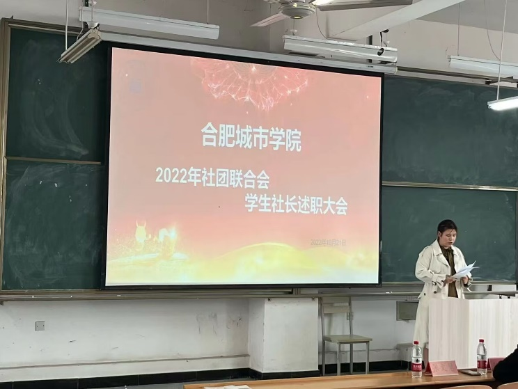 为促进各社团社长与学生社团联合会之间的联系,2022年学生社团联合会学生社长述职大会于10月21日在南教学楼108召开。团委老师伍红平,学生社团联合会指导老师王锐,学生干部王津艺、张文慧以及各学生社团社长和社联干事出席本次述职大会。本次大会由社联主持,各学生社长依次上台做述职报告。