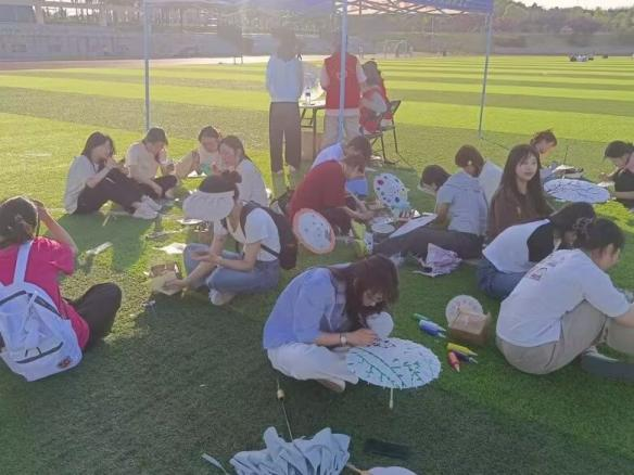 油纸伞制作和大漆团扇绘制环节更是将活动推向了高潮,同学们在绘制油纸伞和制作大漆团扇的过程中,展现出了极高的热情和专注。绘制油纸伞时,他们手持画笔,在伞面上勾勒线条、填充色彩。而制作大漆团扇则更考验同学们的耐心和技艺。同学们精心挑选合适的扇子,为团扇上色,让扇面呈现出光滑细腻的光泽。在同学们的巧手创作下,这些物品宛如凤凰涅槃,蜕变为满载艺术韵味与创意灵魂的美好事物。