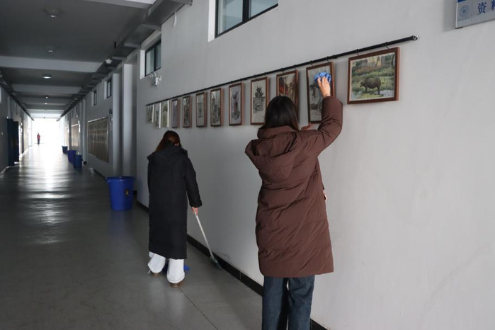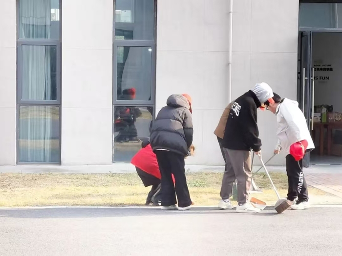 清洁范围涵盖在校园的各个角落,从校园道路旁的落叶清扫,到花坛内的杂物清理;从教学楼走廊处的清洁,到操场设施的擦拭维护;从图书馆的书架整理,到实验楼的玻璃擦拭,无一遗漏。同学们有序分工,有的清扫垃圾,有的专注擦拭公共设施,团队协作默契十足,充分展现了团队互助的精神风貌。同学们劳动的身影让整个校园呈现出一片热火朝天的劳动景象,也让校园环境焕然一新。