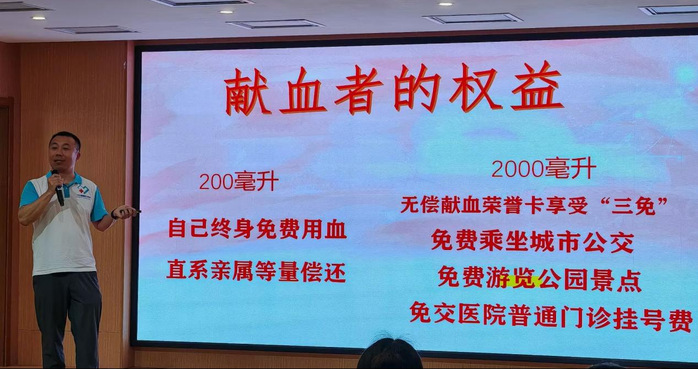 通过本次科普宣讲,大家清楚的了解到了成为献血者后可获得的利益。如自己终身免费用血、免费乘坐城市公交、免费游览公园景点等。