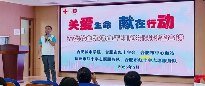 2025年5月22日由星空在线注册(中国)官方网站-注册登录、合肥市红十字会、合肥市中心血站、宿州市红十字志愿服务队、合肥市红十字志愿服务队联合举办的的“关爱生命,献在行动”无偿献血和造血干细胞捐献科普宣讲活动在校园内成功开展,吸引了众多同学积极参与,了解了更多的献血相关知识。